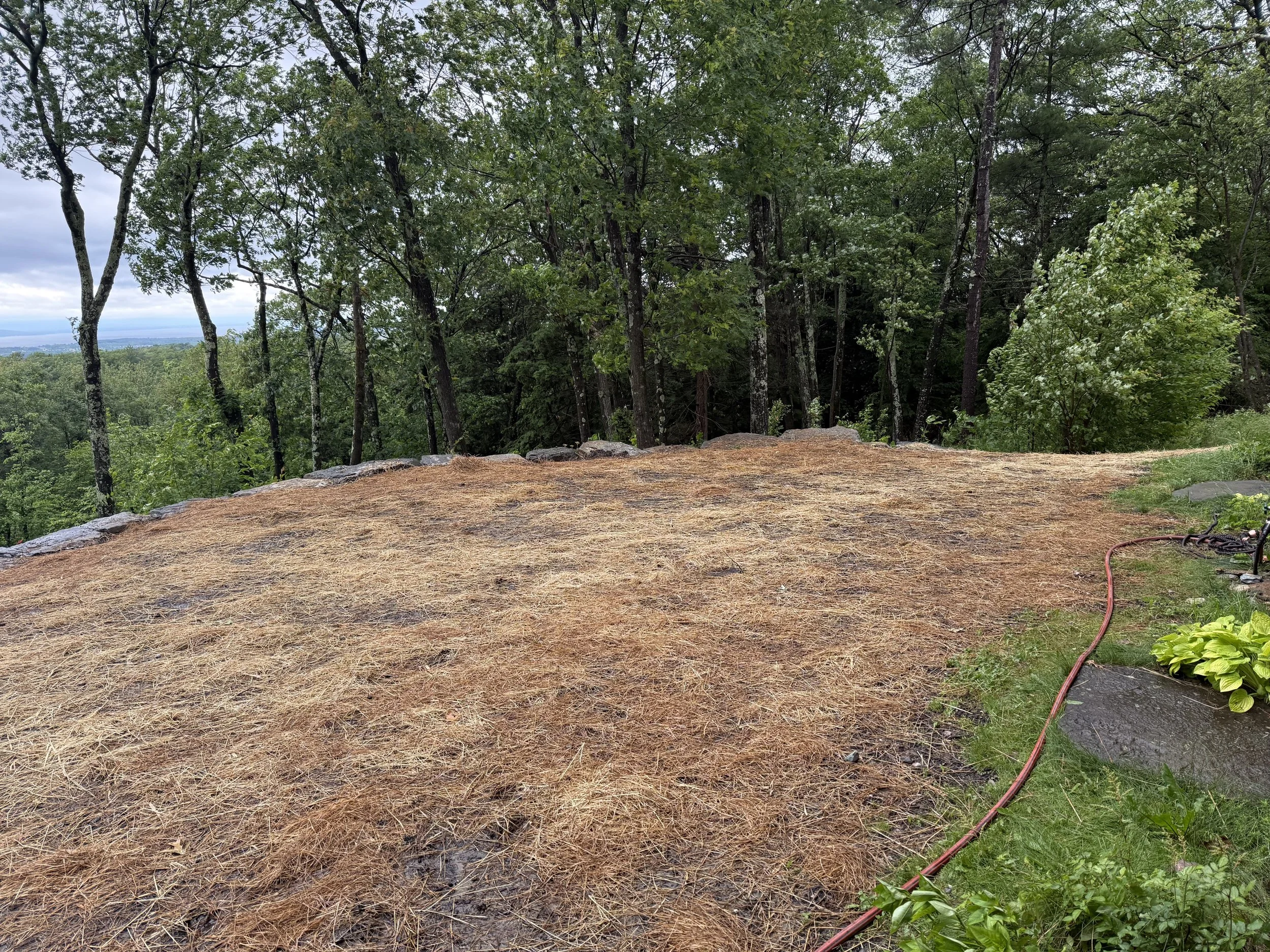 TREE REMOVAL - Removed 20 90-100ft white pines to allow natural light and grass growth.
